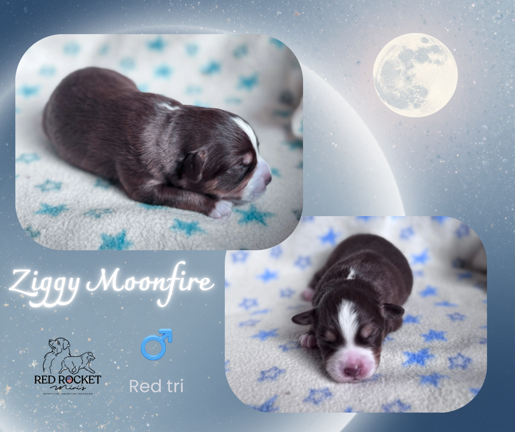 Puppy's zijn geboren op 06 januari 2026, twee reutjes en vier teefjes. Geboren bij volle maan, vandaar onze Moon-puppy's.